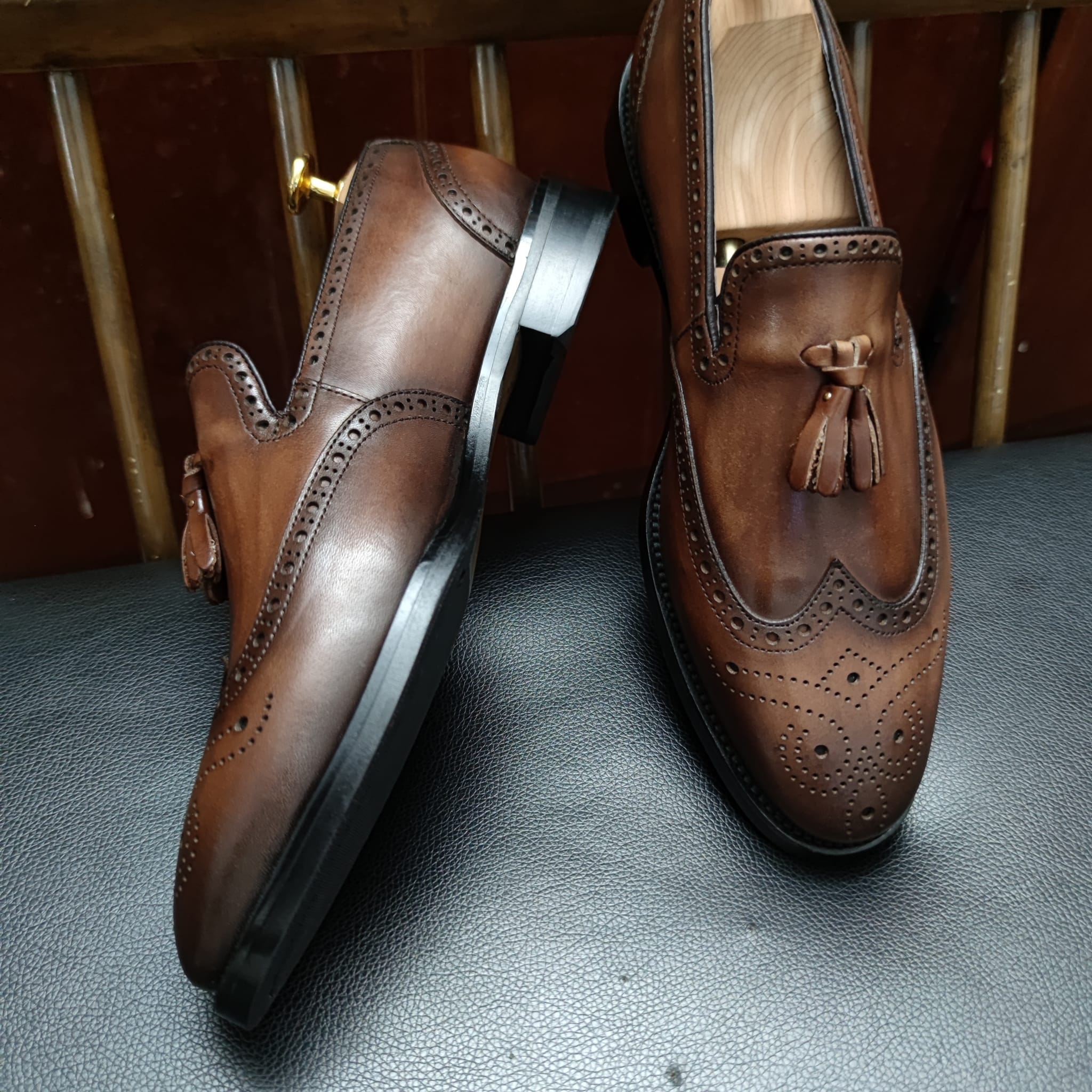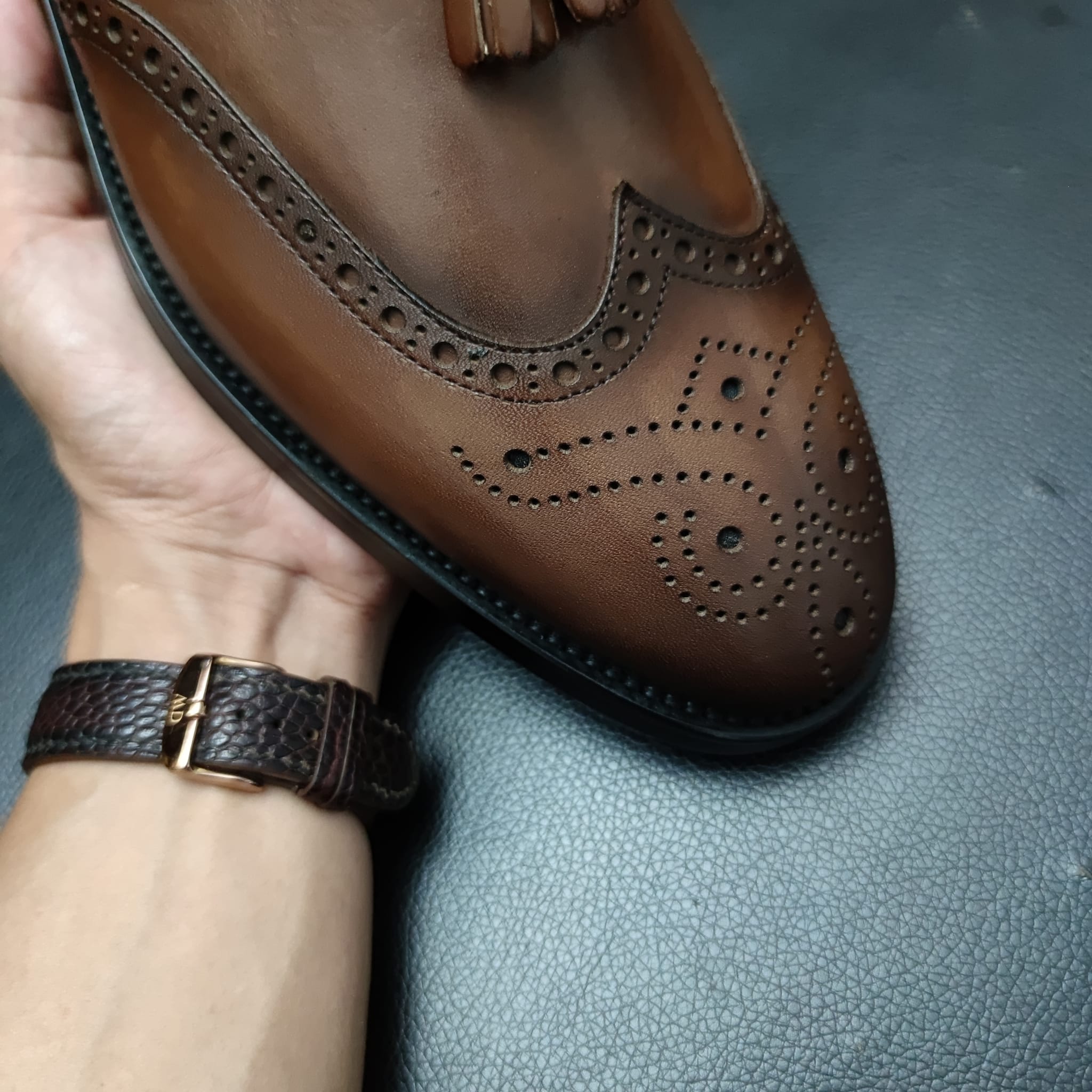 Giày Loafer Wingtip Công Sở 2310 - Da ngoài (upper): da bò - Lót ngoài (uperlining): da dê - Lót trong (sock lining): da dê - Đế (outsole): cao su. - Màu sắc: được đánh sơn bằng tay. - Handmade 100% * Thiết kế buộc dây trẻ trung, sang trọng và lịch lãm dễ dàng phối với tây, Vest, suit và Kaki.