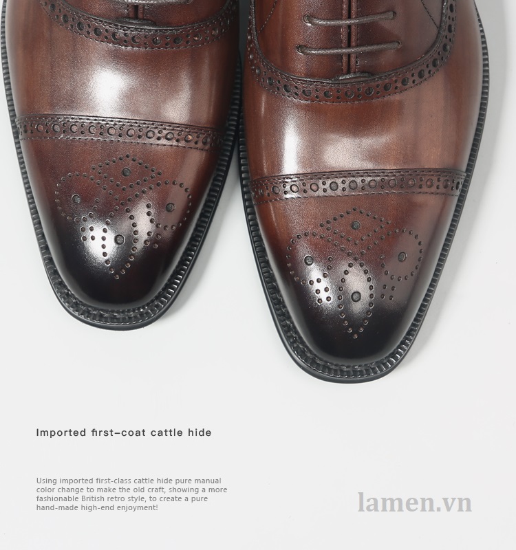 Thiết kế Half Brogue: Với họa tiết đục lỗ trang trí phần mũi giày, tạo điểm nhấn nổi bật nhưng không quá cầu kỳ – rất phù hợp với môi trường chuyên nghiệp.
