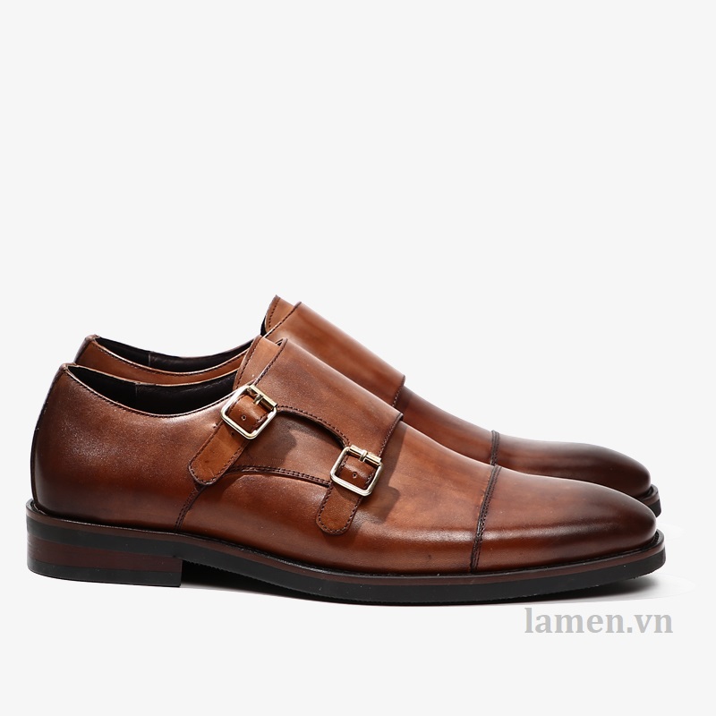 Giày tây nam Double Monk Strap - Da ngoài (upper): da bò - Lót ngoài (uperlining): da dê - Lót trong (sock lining): da dê - Đế (outsole): cao su. - Màu sắc: được đánh sơn bằng tay. - Handmade 100% * Thiết kế buộc dây trẻ trung, sang trọng và lịch lãm dễ dàng phối với tây, Vest, suit và Kaki.