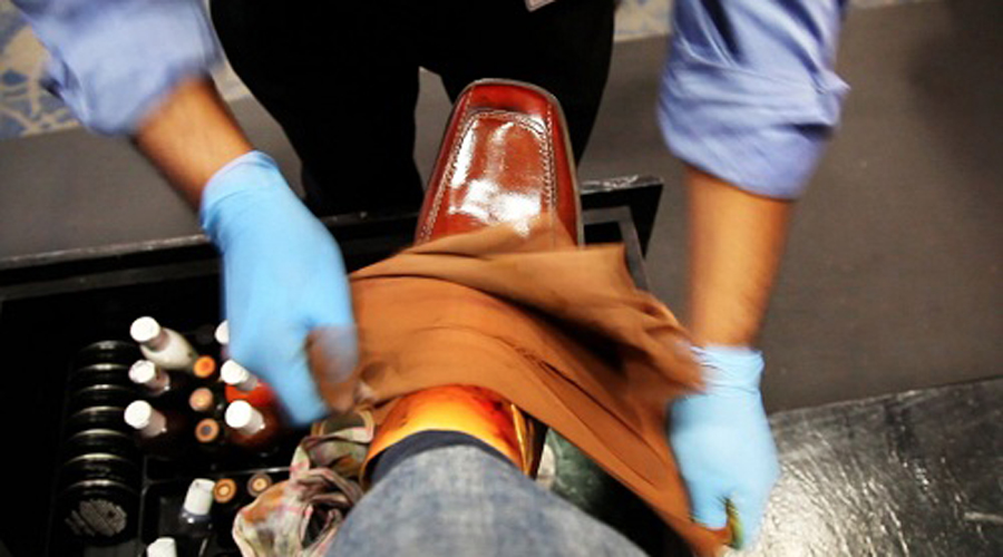 - Lưu ý: phải tháo dây giày trước khi đánh bóng giày.